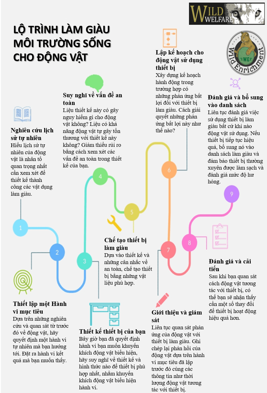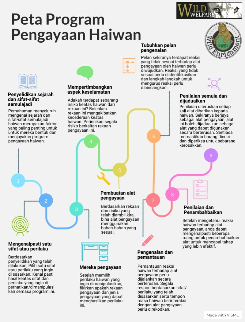 The Wild Welfare enrichment road map, created in conjunction with Wild Enrichment, guides you with another approach to enrichment programming from planning through to assessment. It is currently available in the following languages: