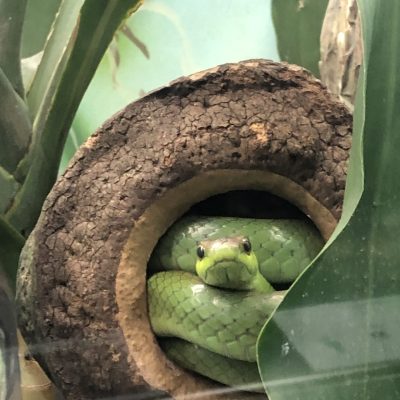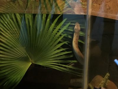 Palm fronds provide the anaconda with tactile and visual enrichment, and provides cover